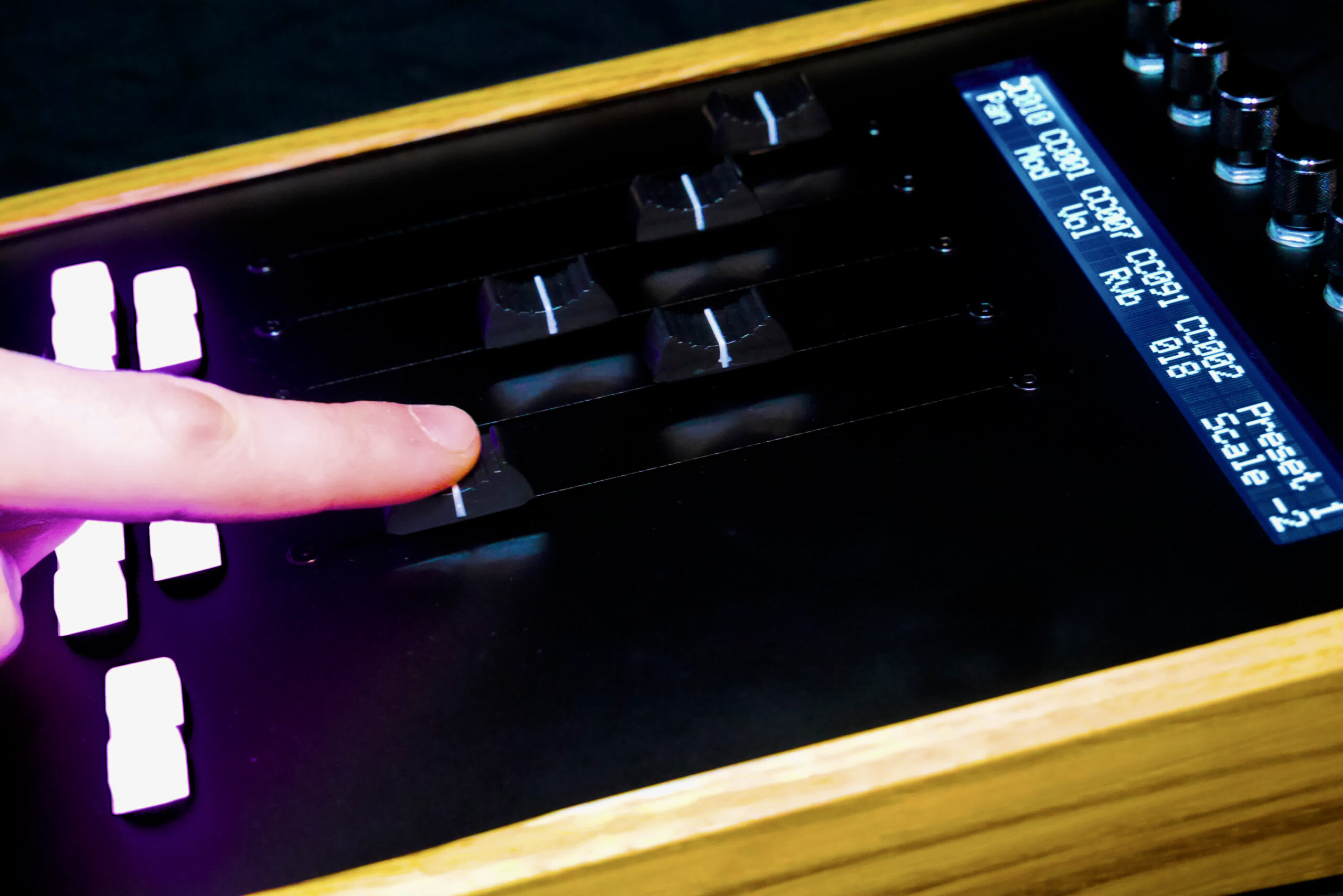 Logos is a 5-fader MIDI controller engineered to eliminate workflow friction. Each fader offers instant customization—assign any MIDI CC, label it with a custom name, and select its response curve—with eight banks to store your perfect setups.